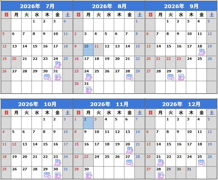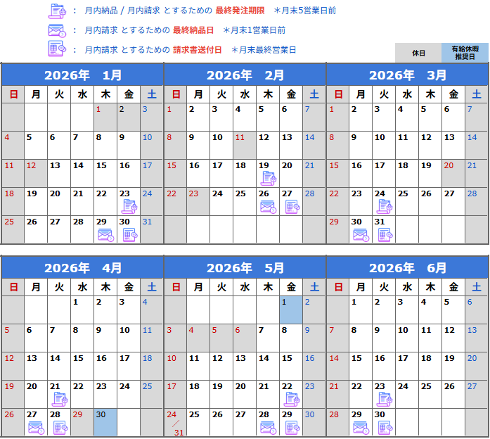■納品書/請求書 発送スケジュール